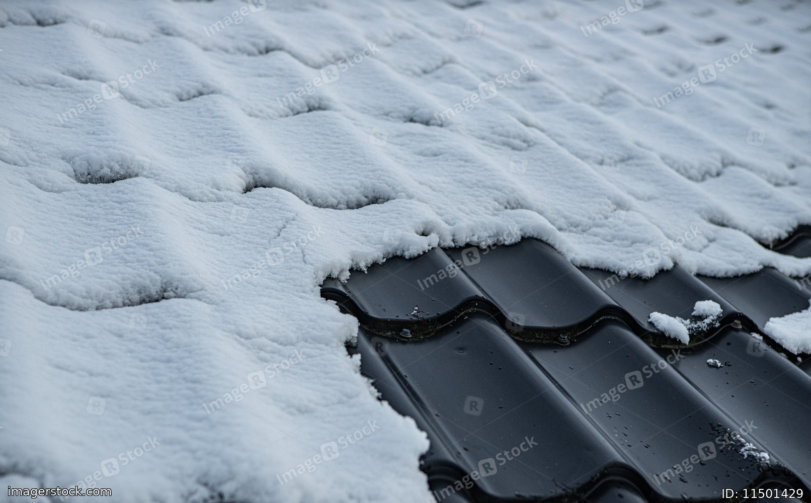 Close-up of snow on a tiled roof