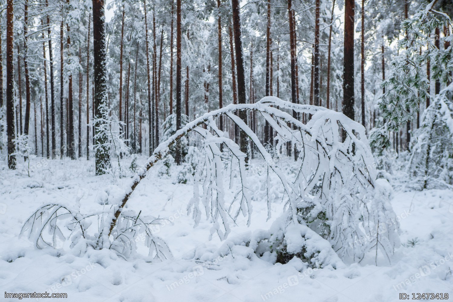 Beautiful winter landscape. Pine forest. Trees covered by snow