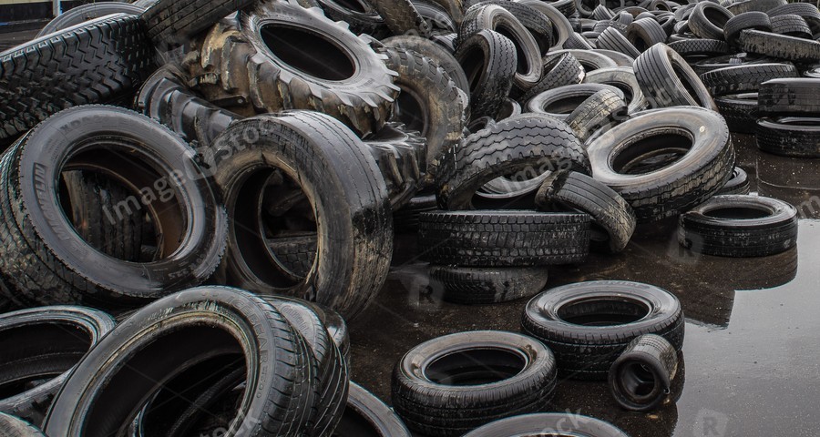 Furnaces for pyrolysis, processing and disposal of old tires. Industrial photo.