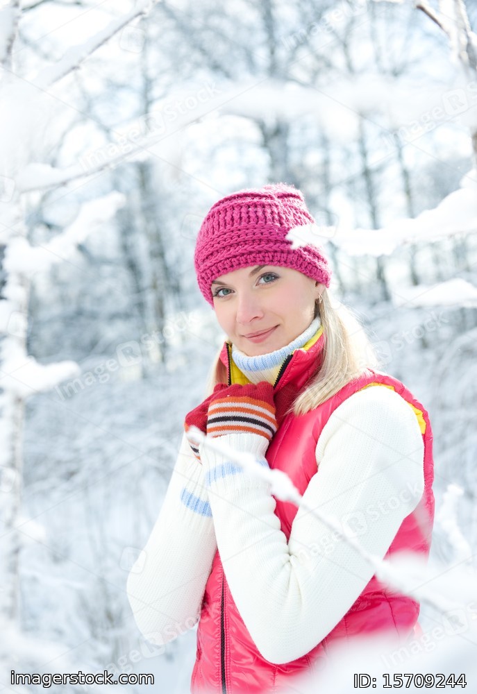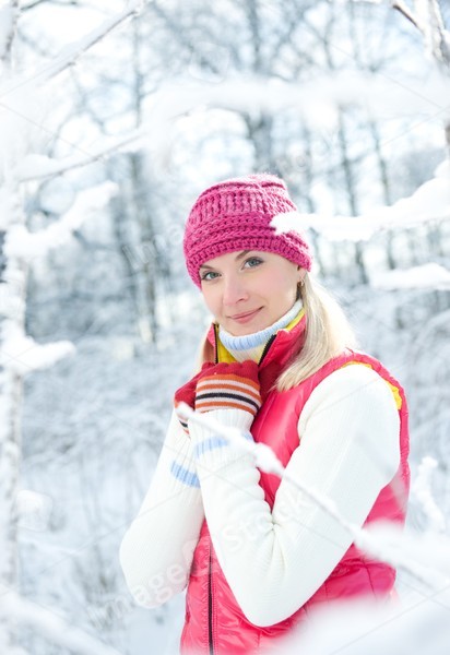 Frozen beautiful woman in winter clothing outdoors