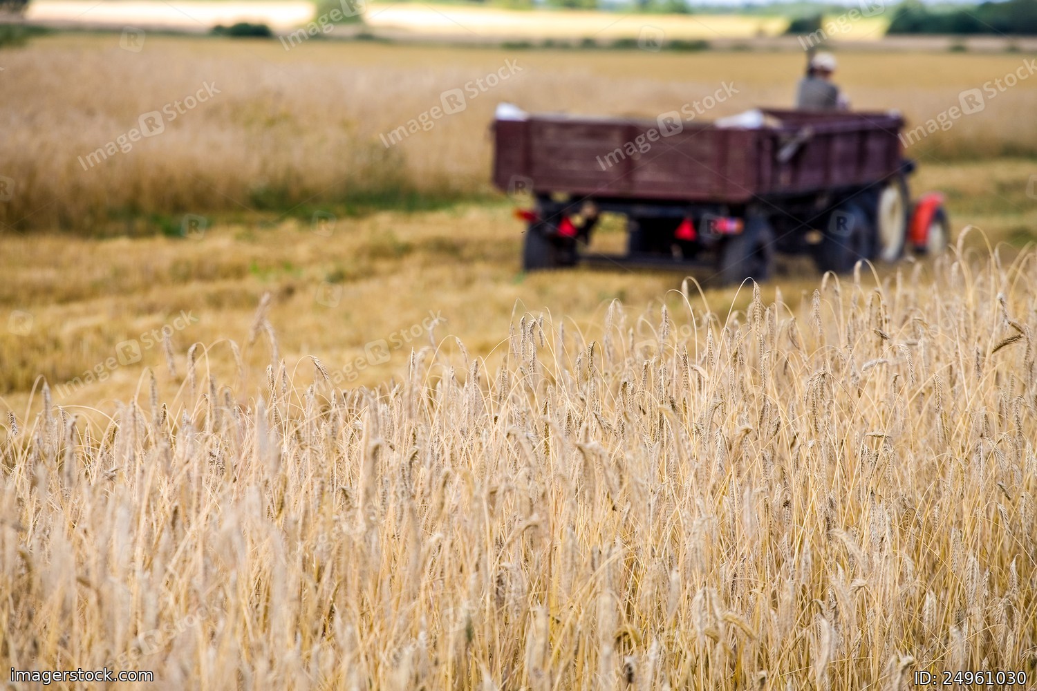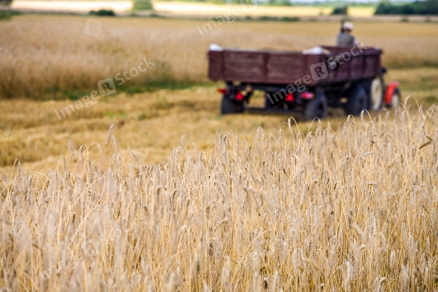 Harvesting of wheat. Tractor and special harvesting equipment.