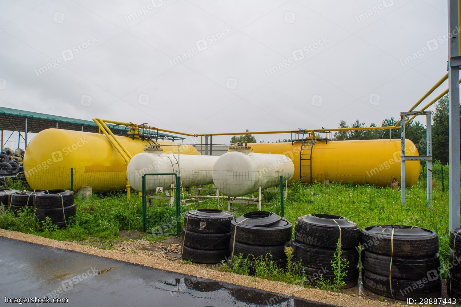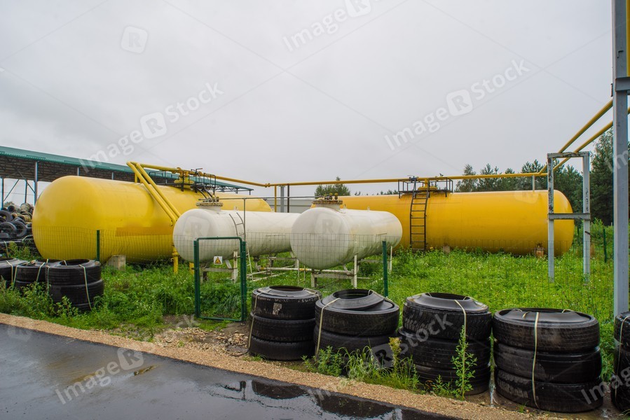 Furnaces for pyrolysis, processing and disposal of old tires. Industrial photo.