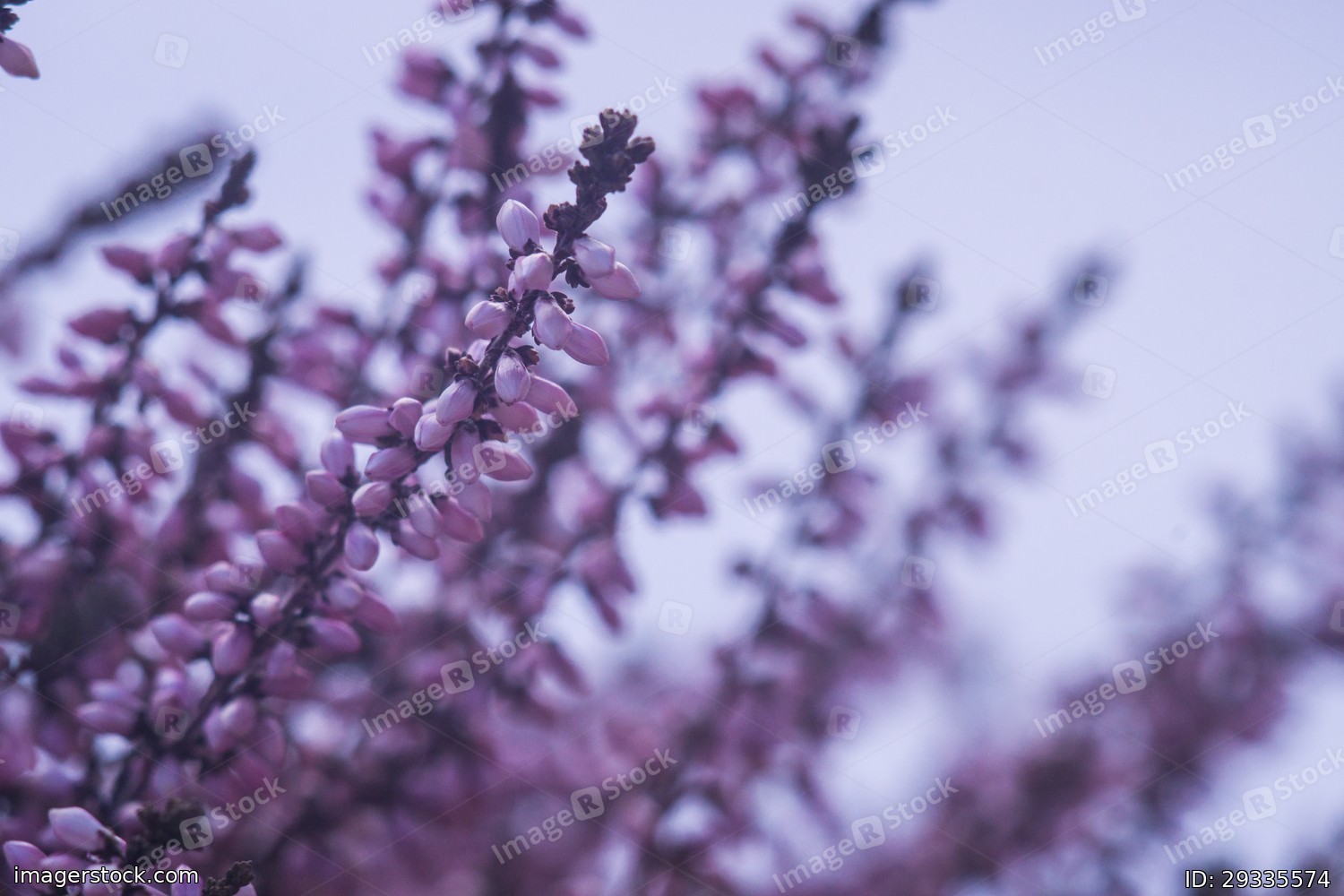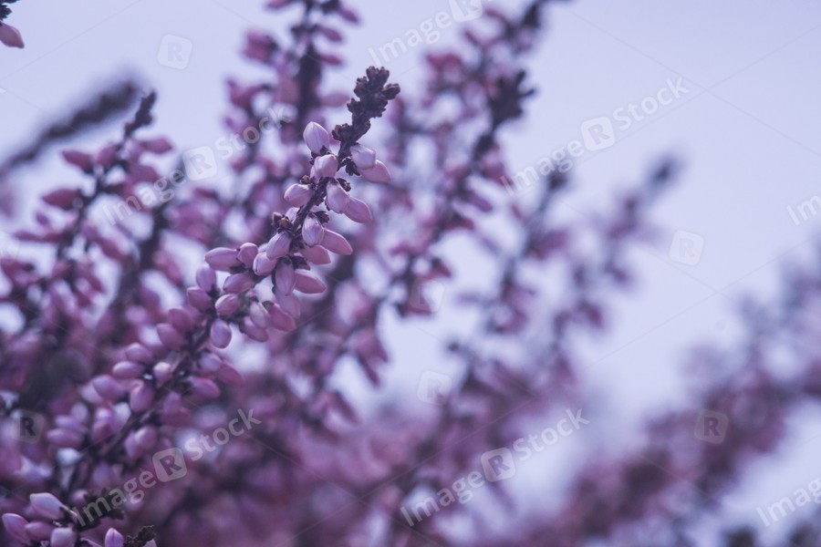 Bright purple heather in winter captured on macro