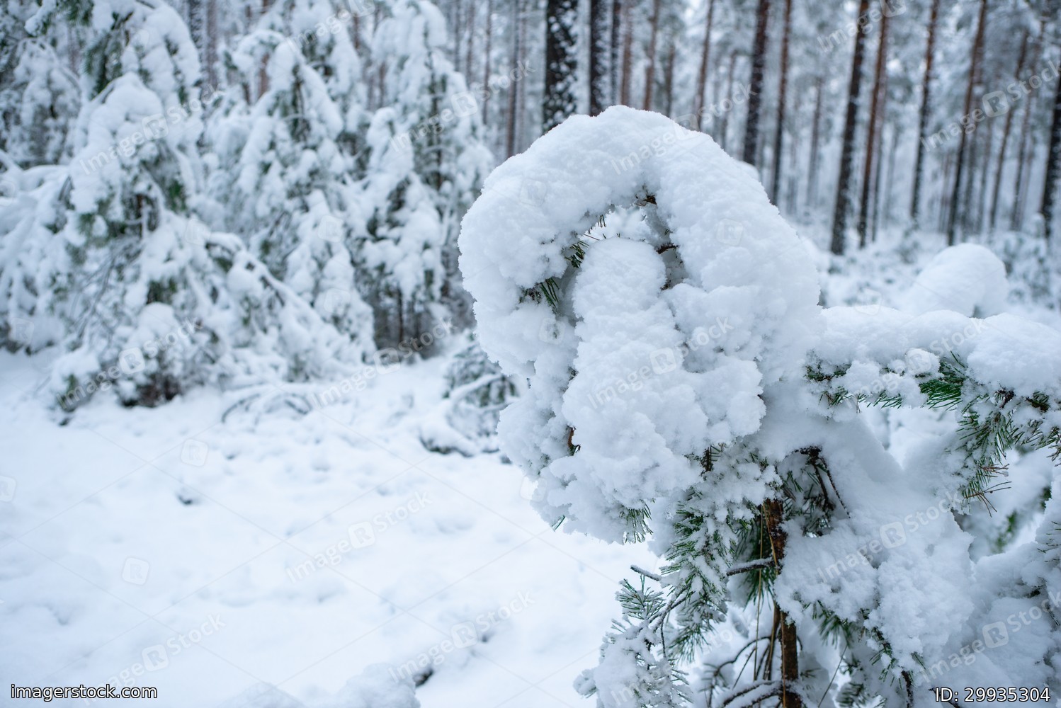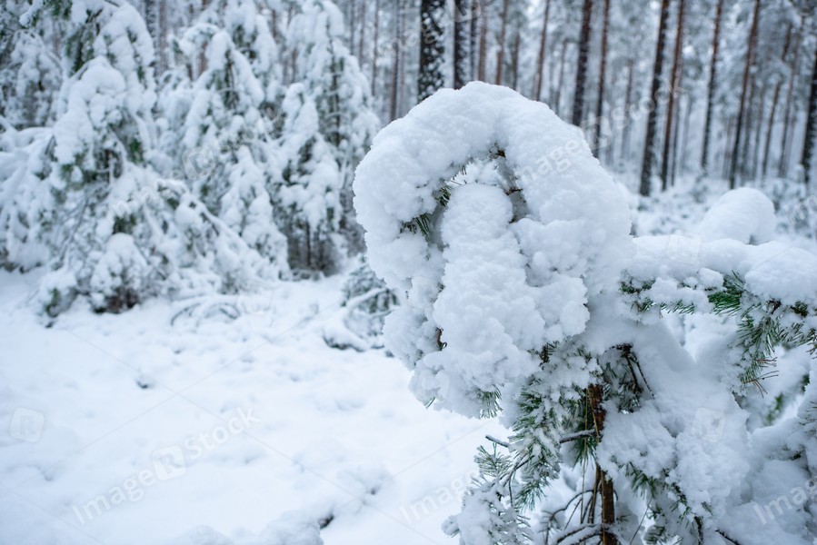 Beautiful winter landscape. Pine forest. Trees covered by snow