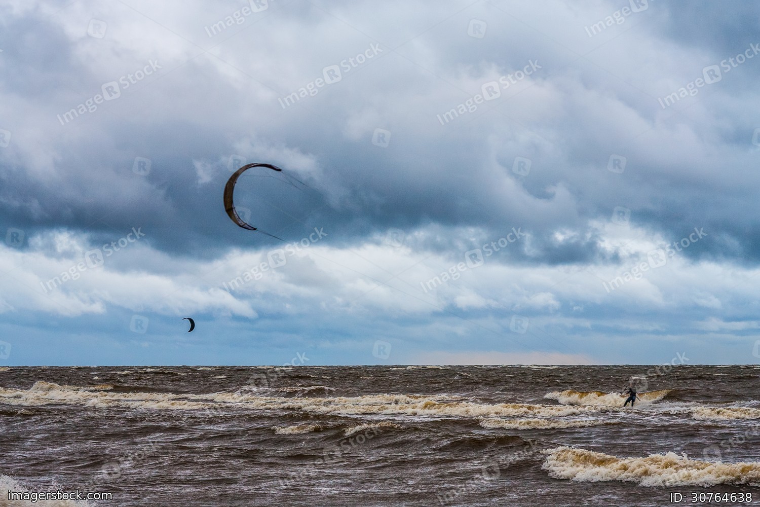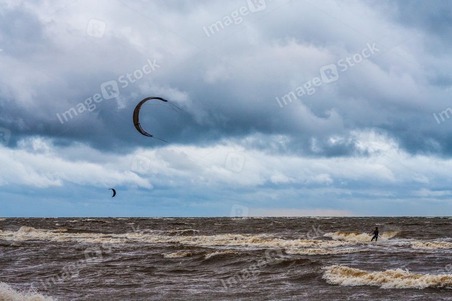 Kite surfing. The wind is the sea and waves.