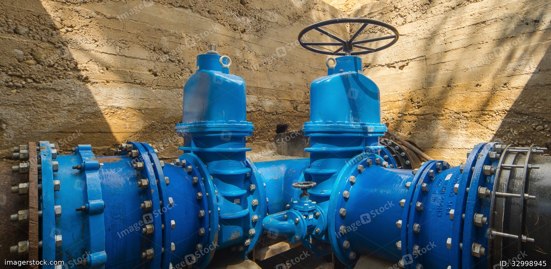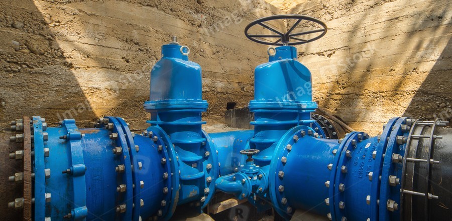 Underground water supply system. Large valves.
