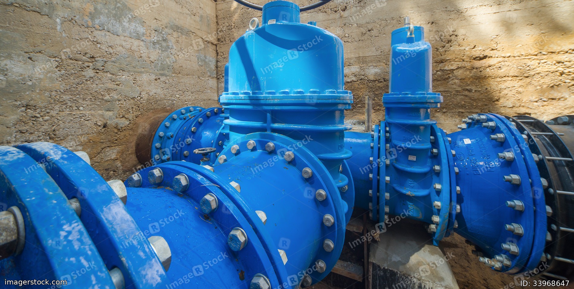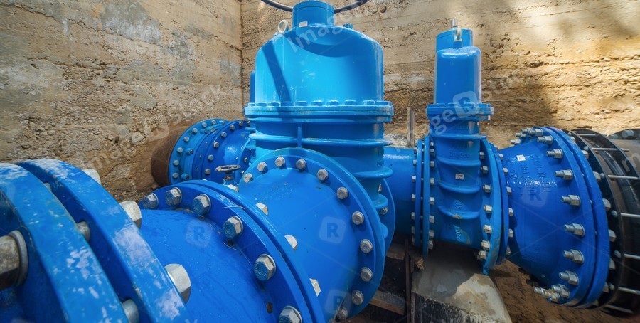 Underground water supply system. Large valves.