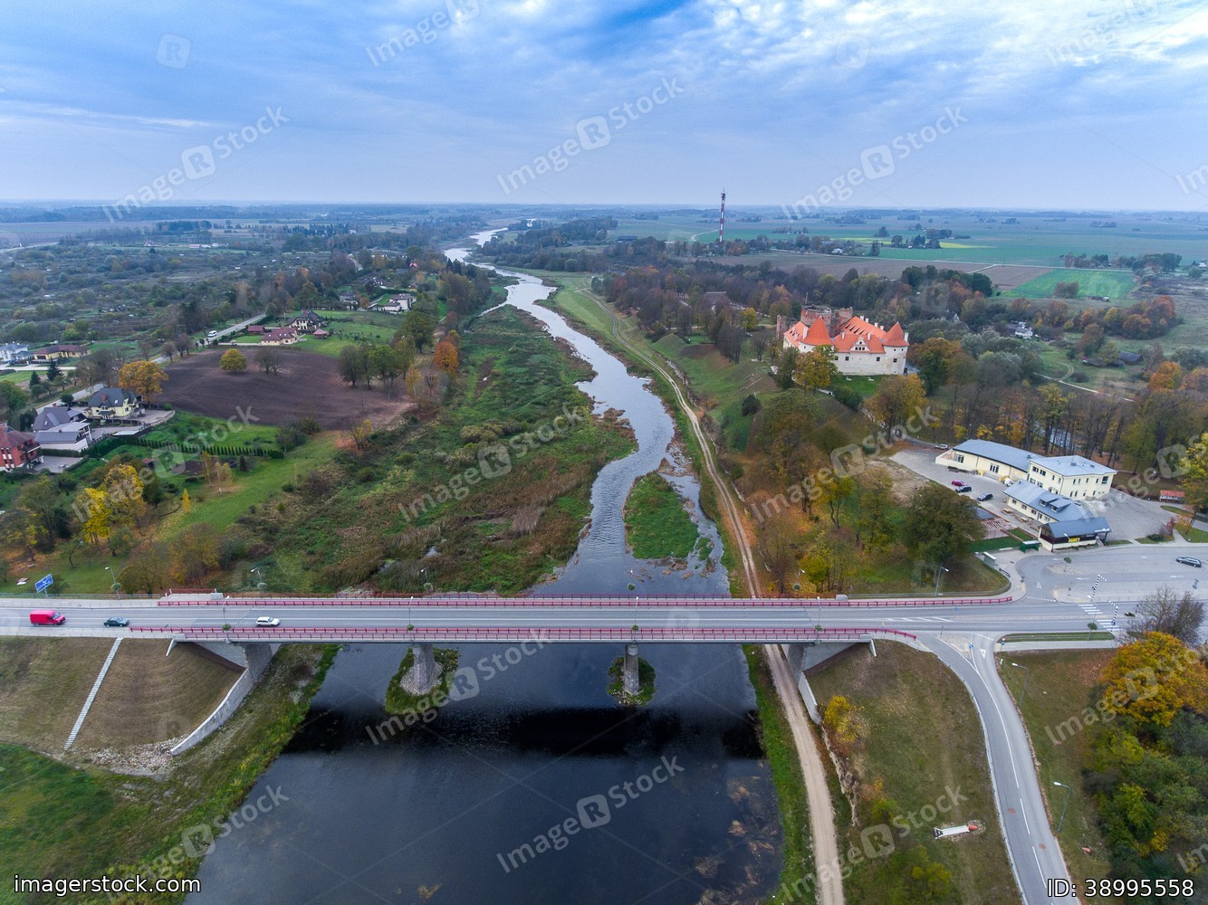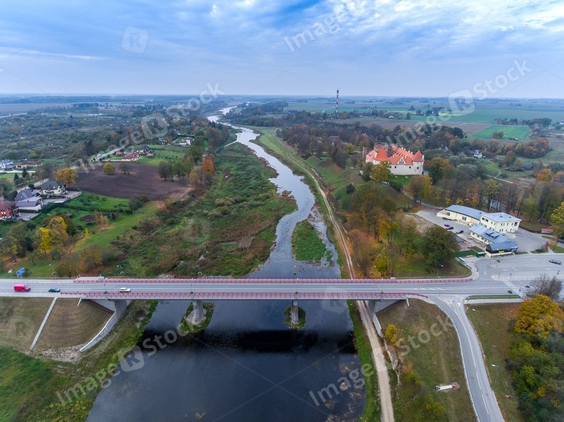 Bauska bridge, the river Misa. Lielupe. Aerial photo.