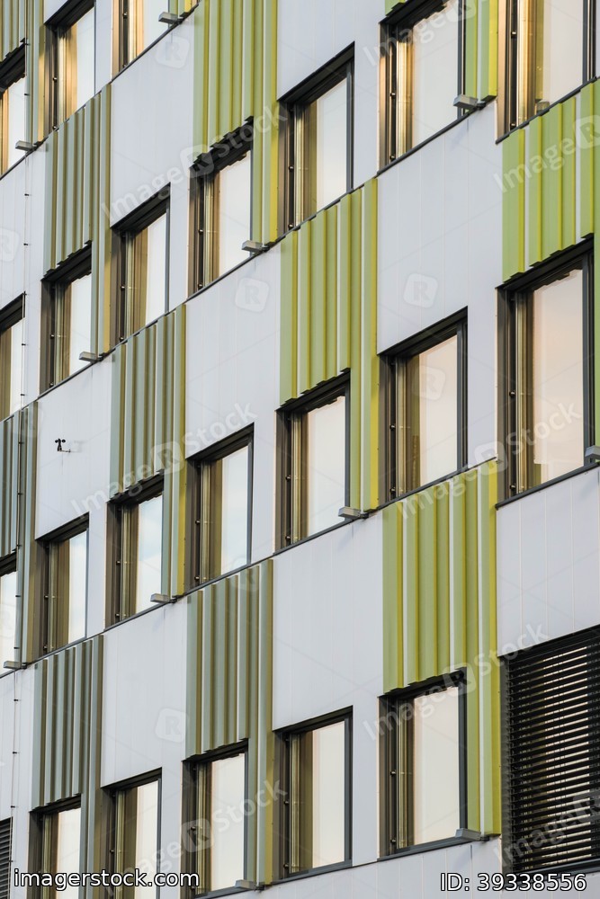 Wall of office building with windows. Modern exterior.