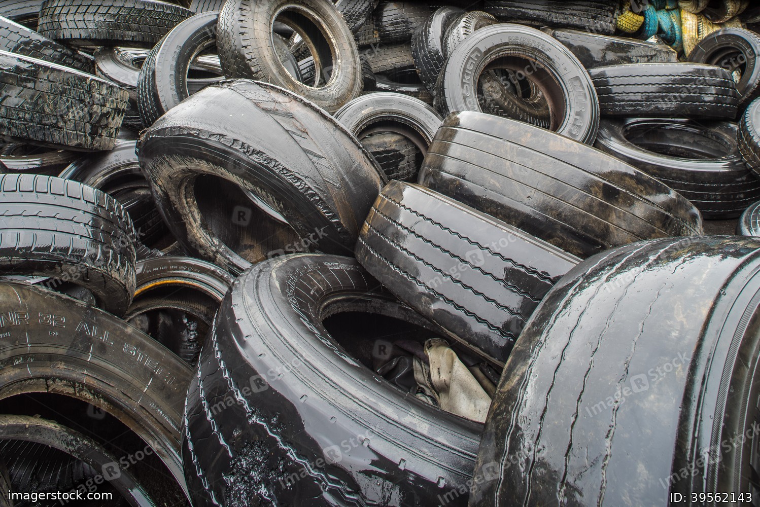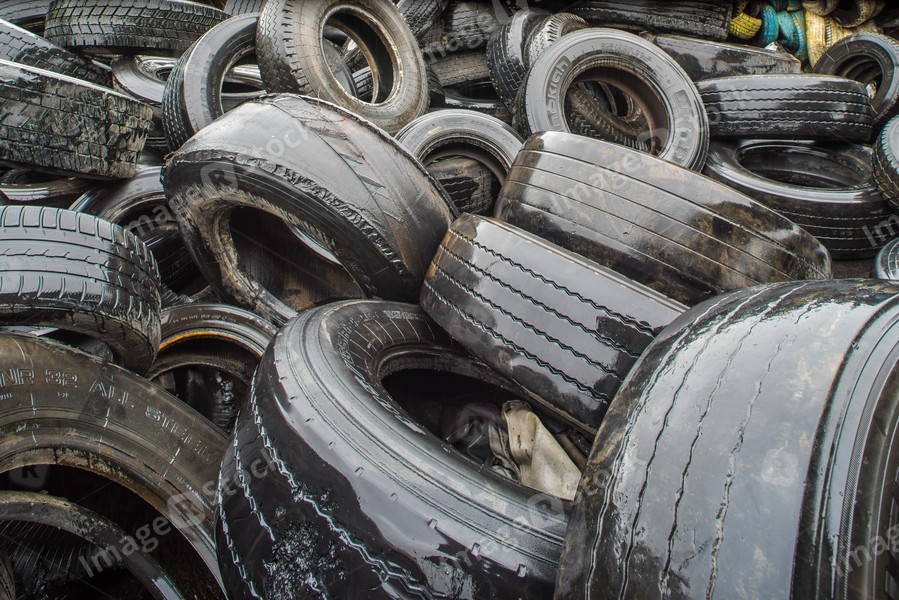 Furnaces for pyrolysis, processing and disposal of old tires. Industrial photo.