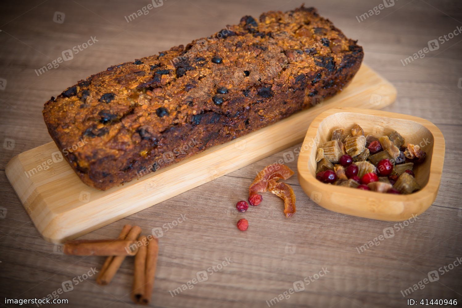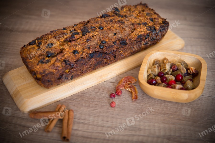 Homemade fruit bread with cosy winter decorations