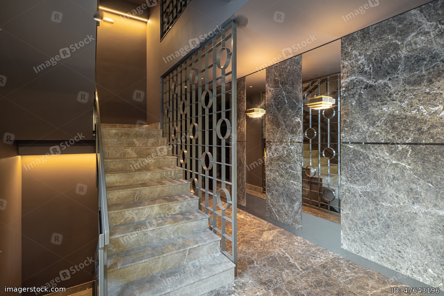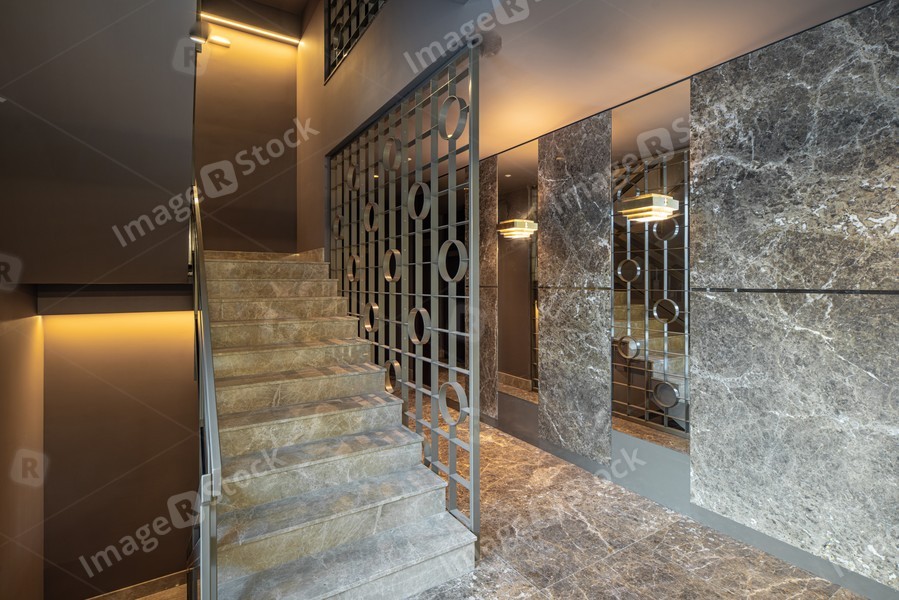 Modern marble interior of entrance hall in luxury residential building