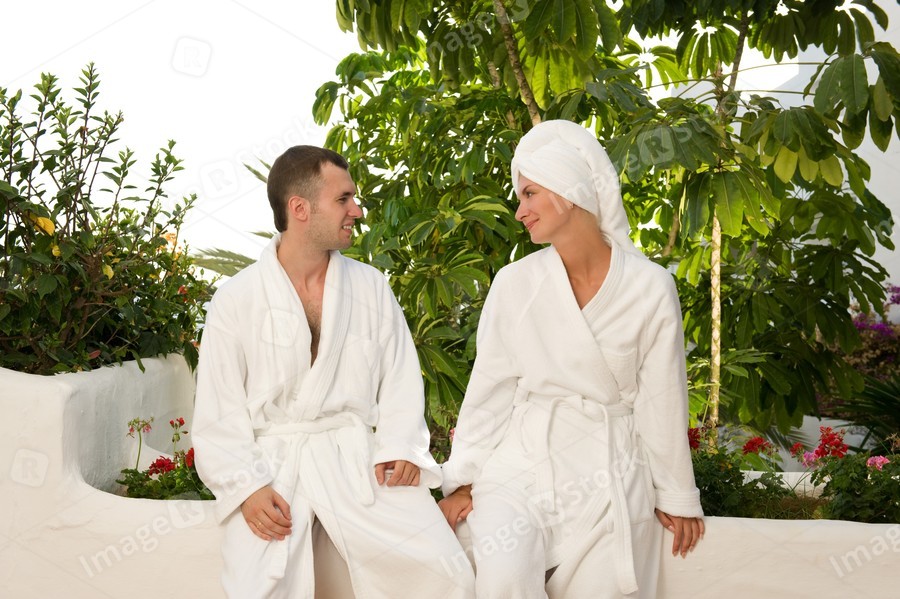 Young couple relaxing after bath
