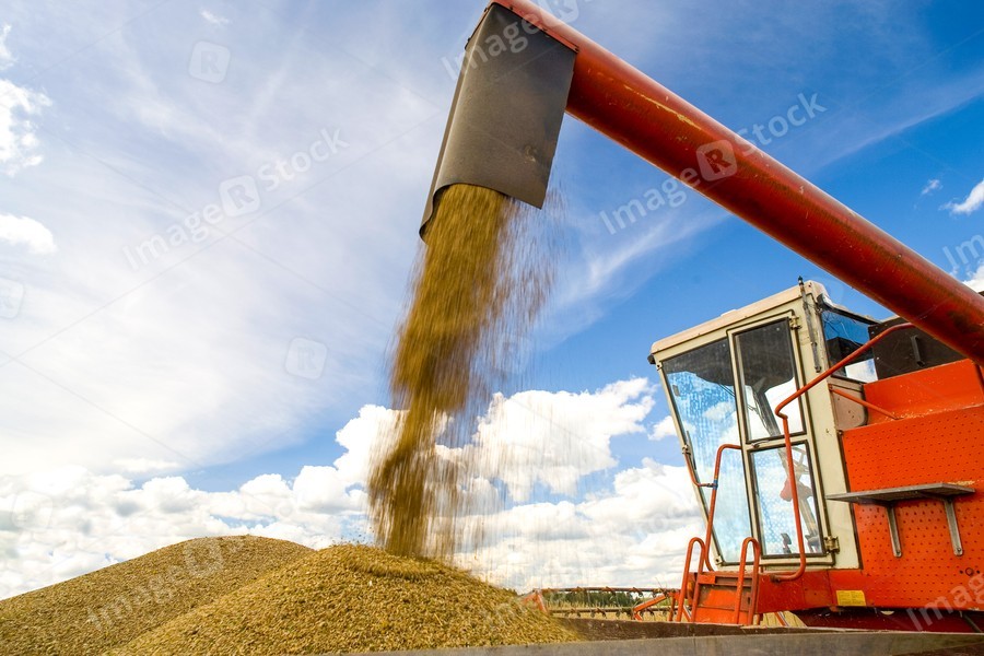 Harvesting of wheat. Tractor and special harvesting equipment.