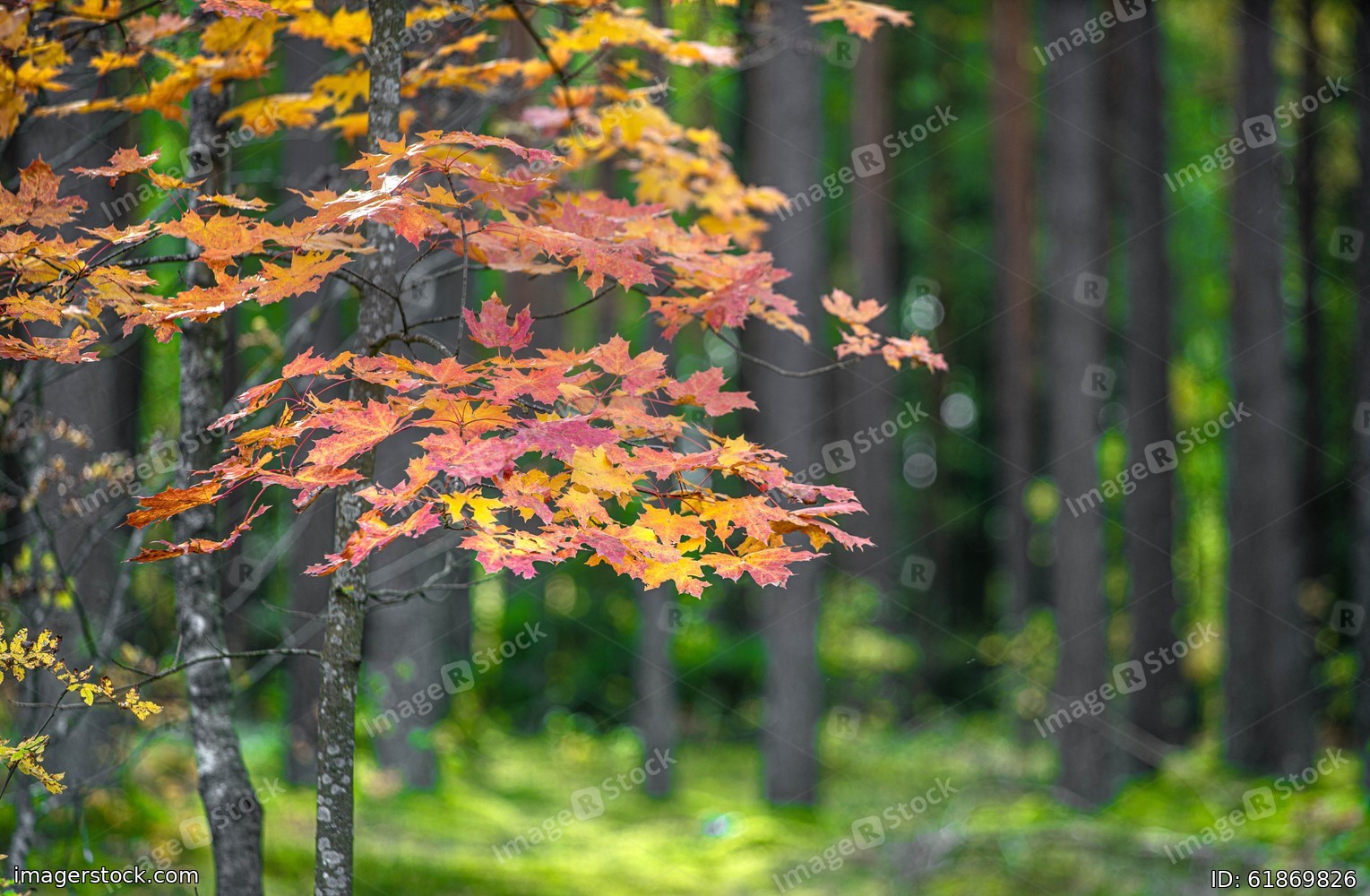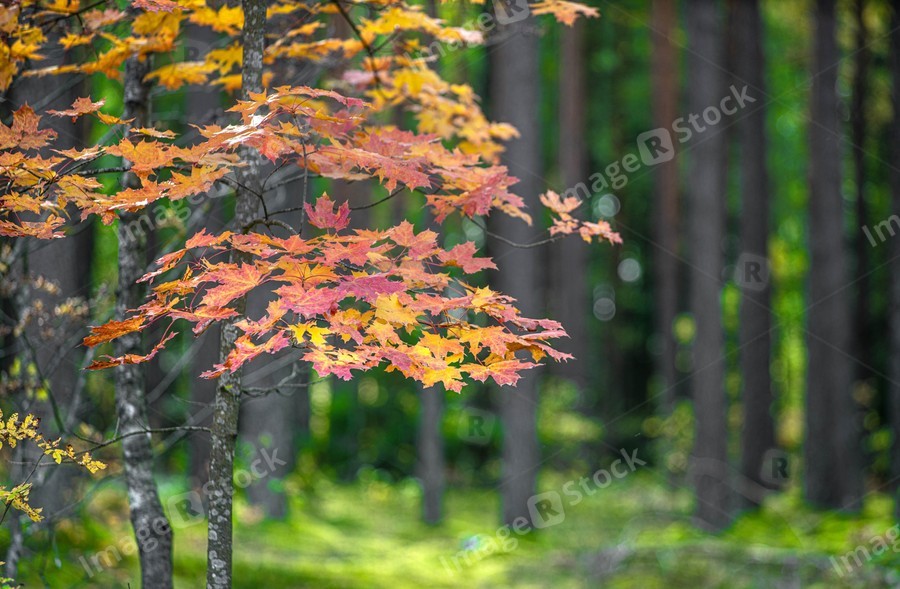 Red leaves on maple. Autumn nature. Beautiful landscape.