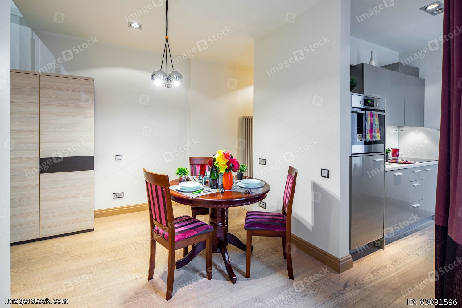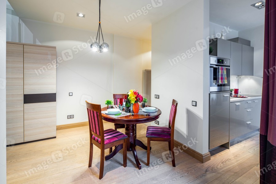 Kitchen interior in modern apartment. Kitchen set.