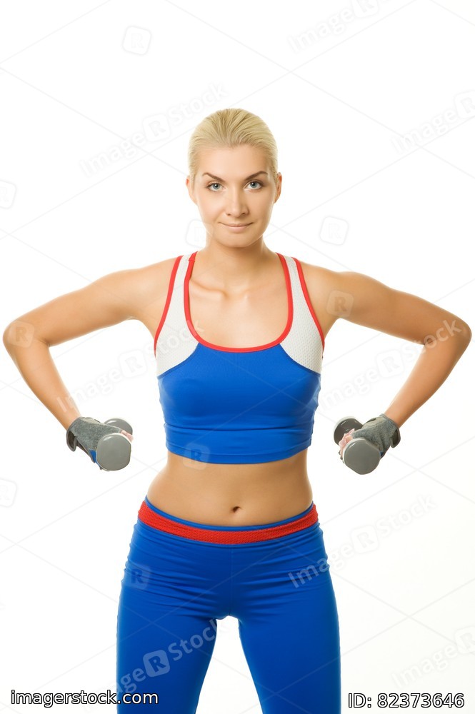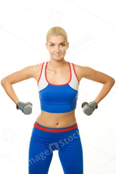 Fitness trainer with two dumbbells