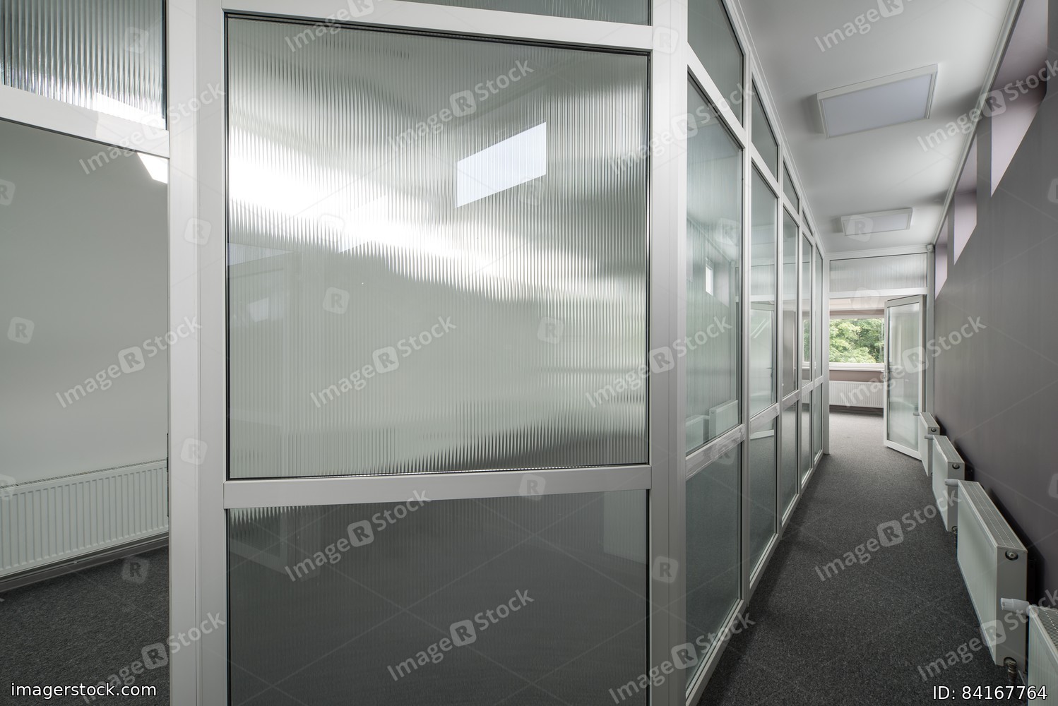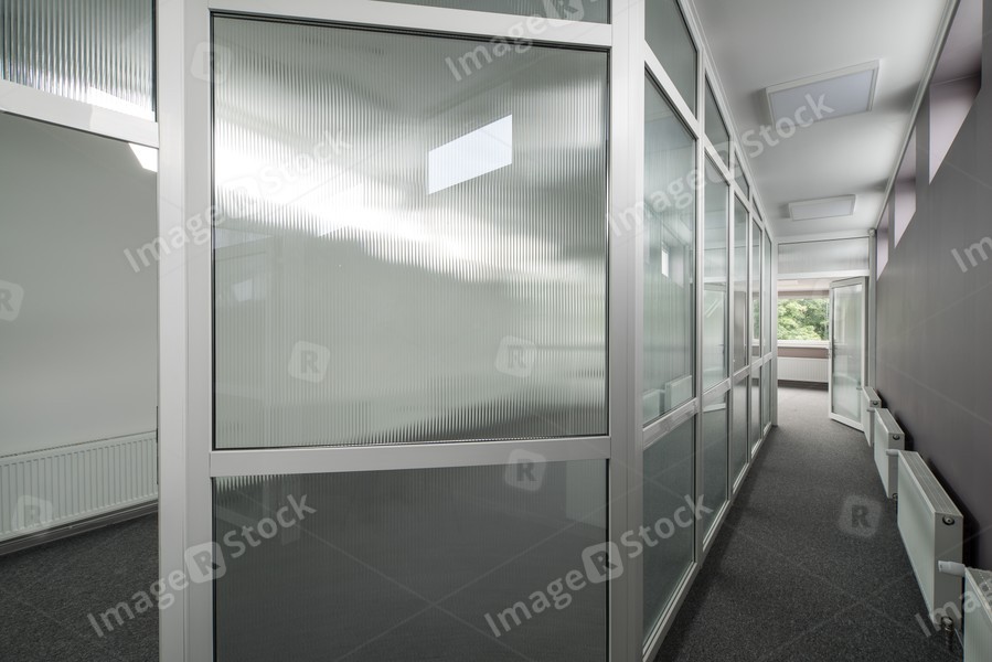 Office interior with glass walls.