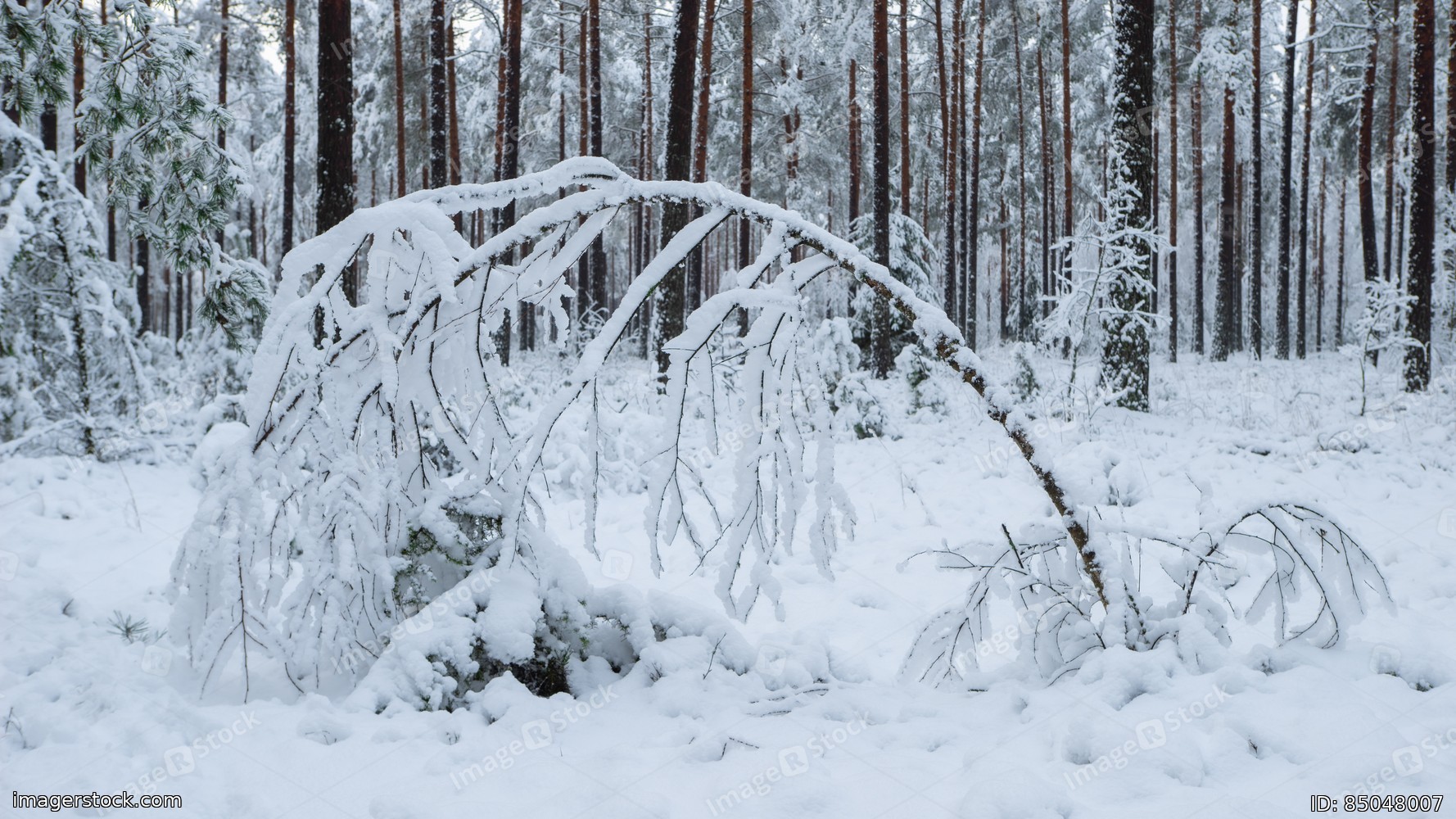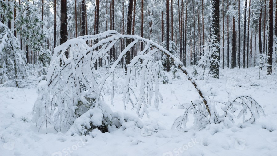 Beautiful winter landscape. Pine forest. Trees covered by snow