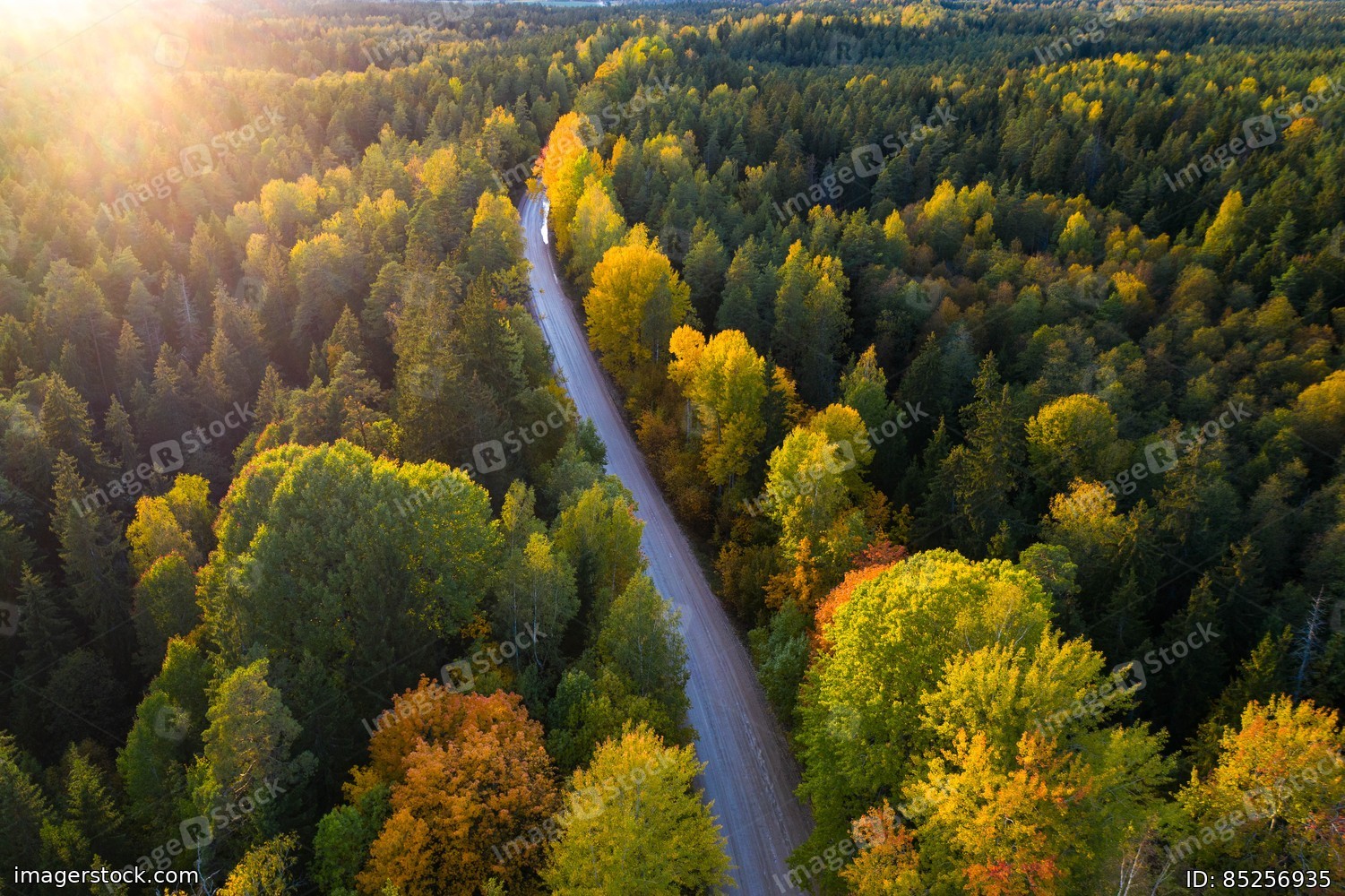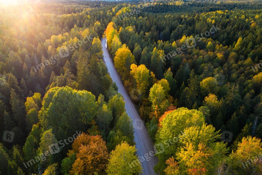 Latvian autumn nature. Forest and road. View from the top.