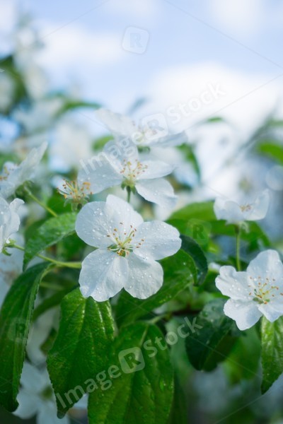 Apple tree with beautiful white flowers in late spring