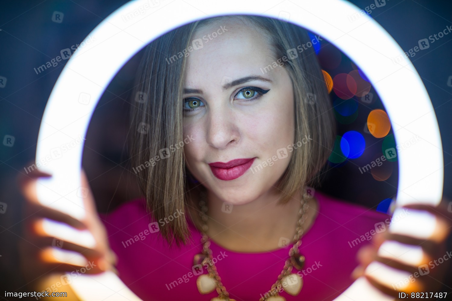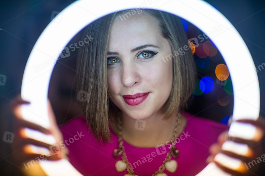 A girl with ring lamp.