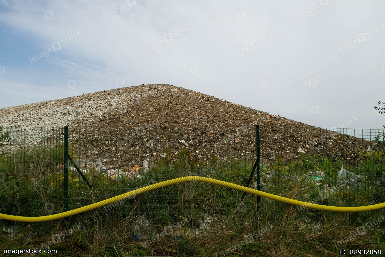 Huge landfill of big city. Large pile of different garbage. Environmental pollution. Waste sorting. Preparation for recycling.