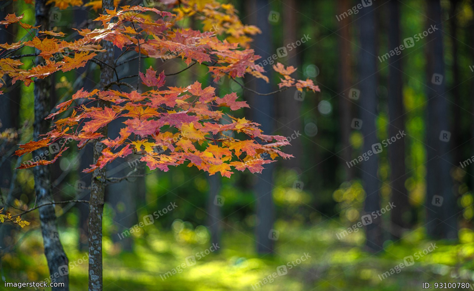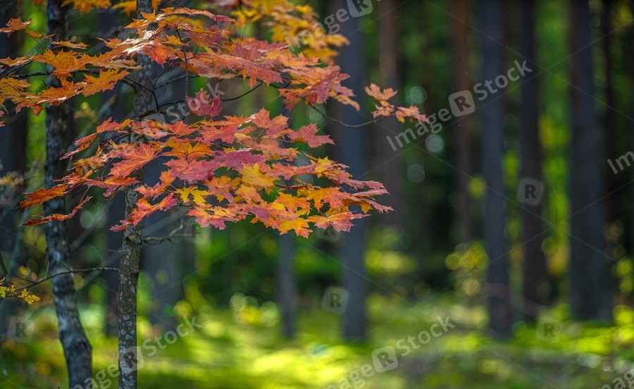 Red leaves on maple. Autumn nature. Beautiful landscape.