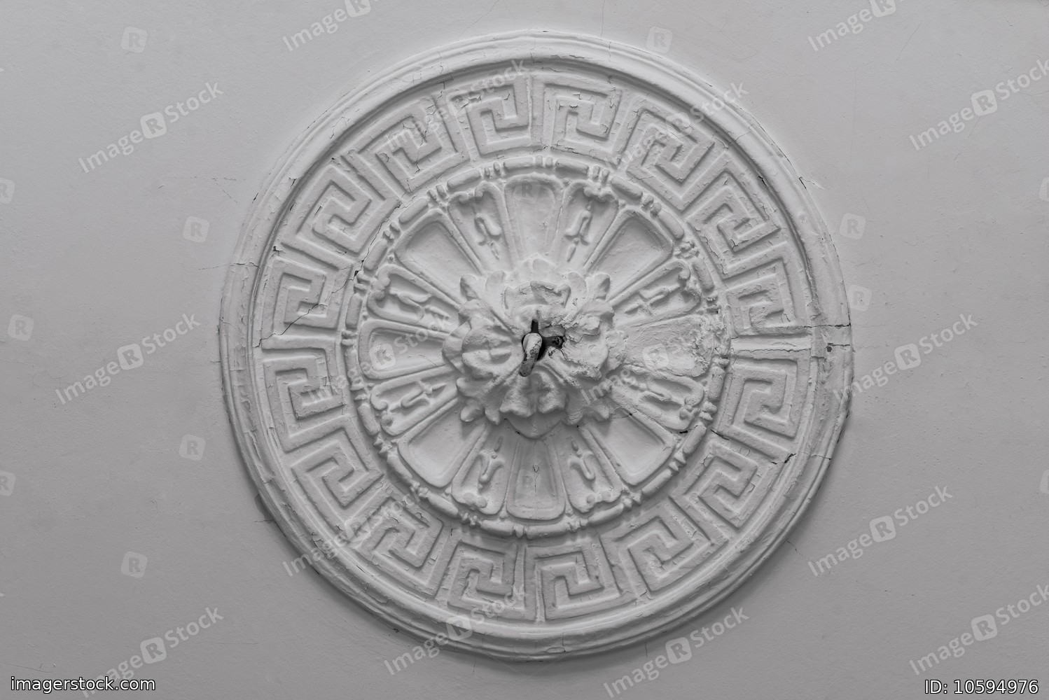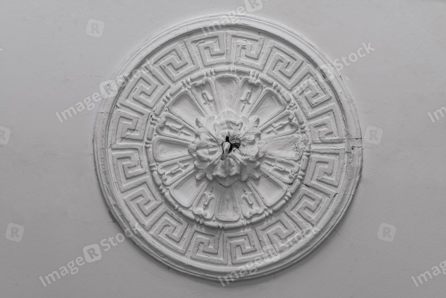 The old gypsum rosette on the celling.