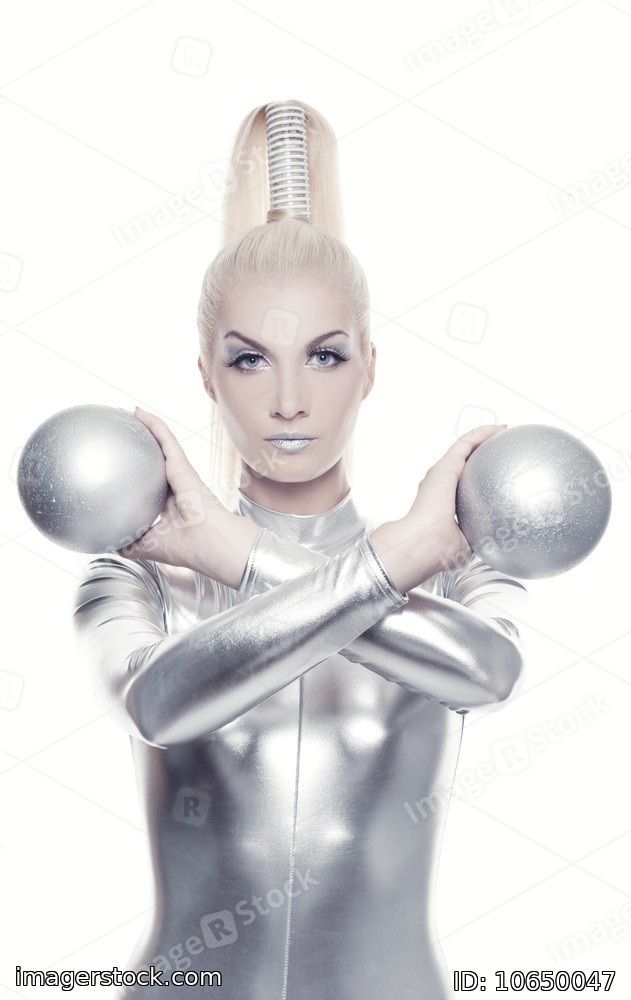 Beautiful cyber woman with silver balls