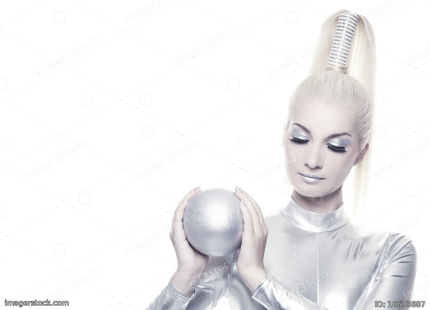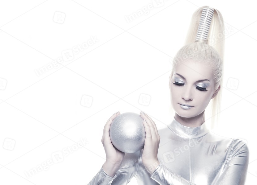 Beautiful cyber woman with silver ball