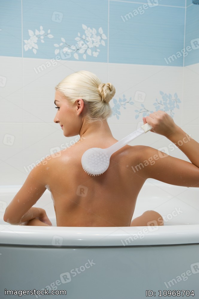 Young woman washing in bathroom