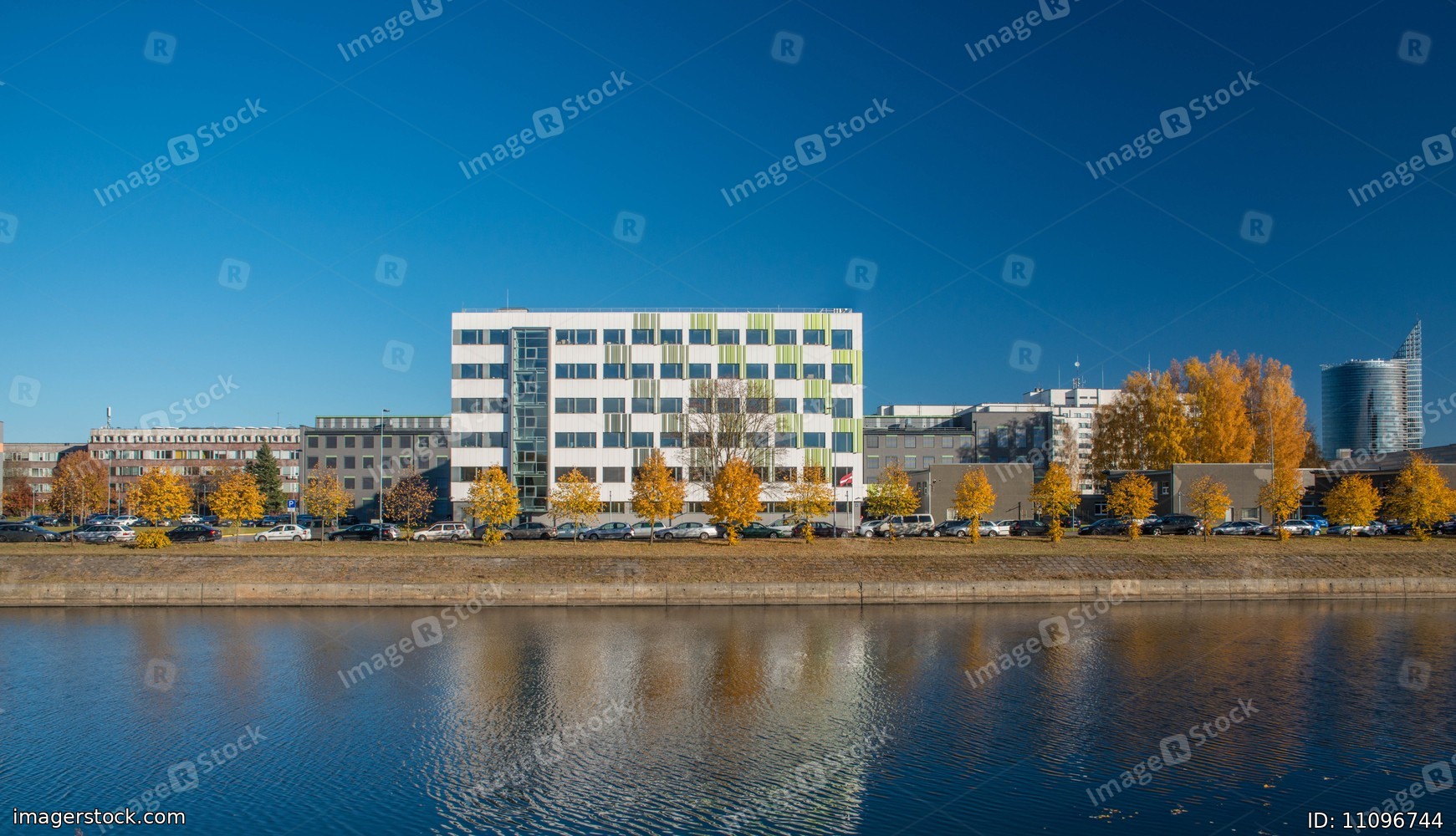 Modern architecture. Office building. Reflection on the water.