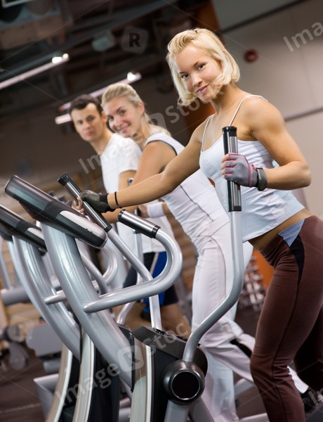Group of people jogging in a gym