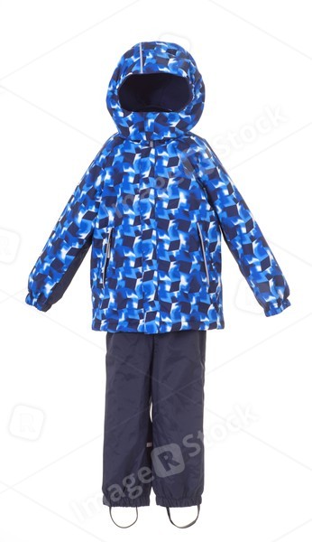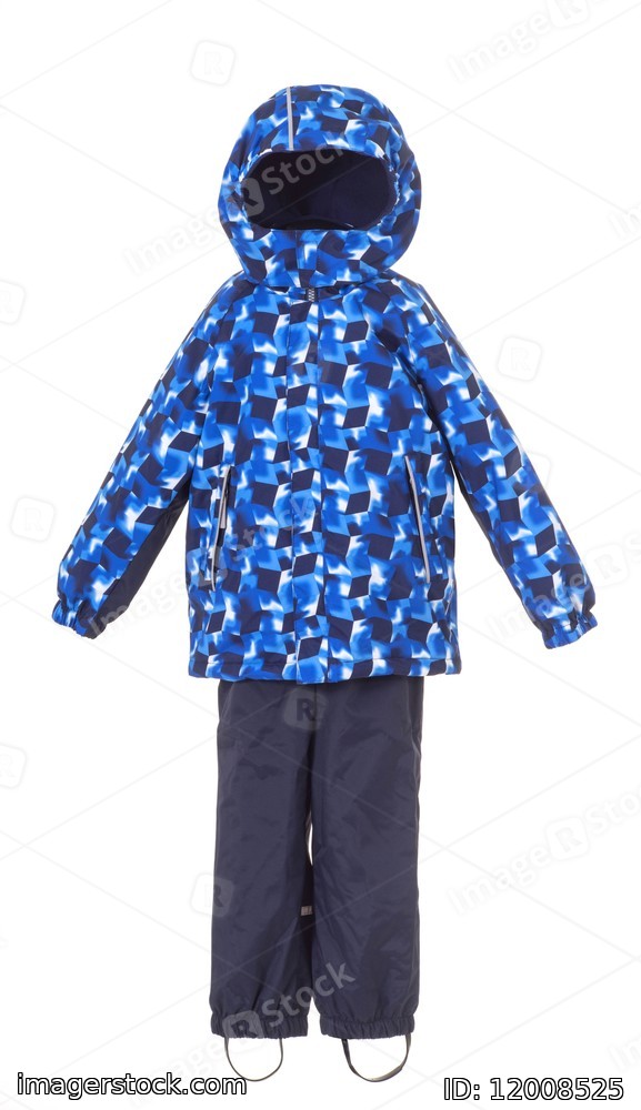 White background. Children costume. Coat and pants. Fashion.