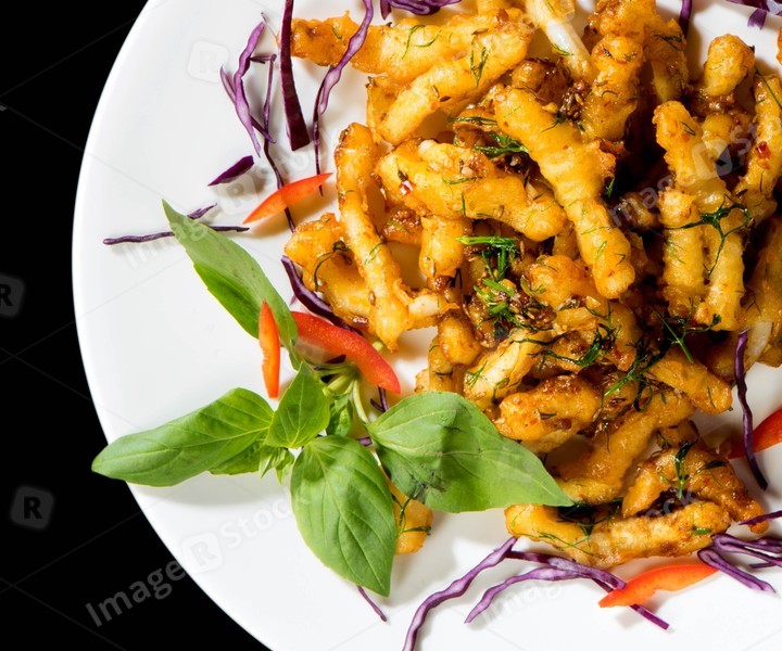 Close-up tasty food. Fresh cabbage and sprig of sweet Basil.