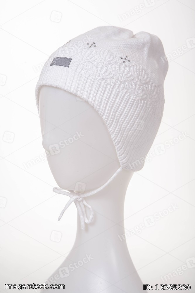 Stylish children hat. White background. Girls hat. Children fashion.