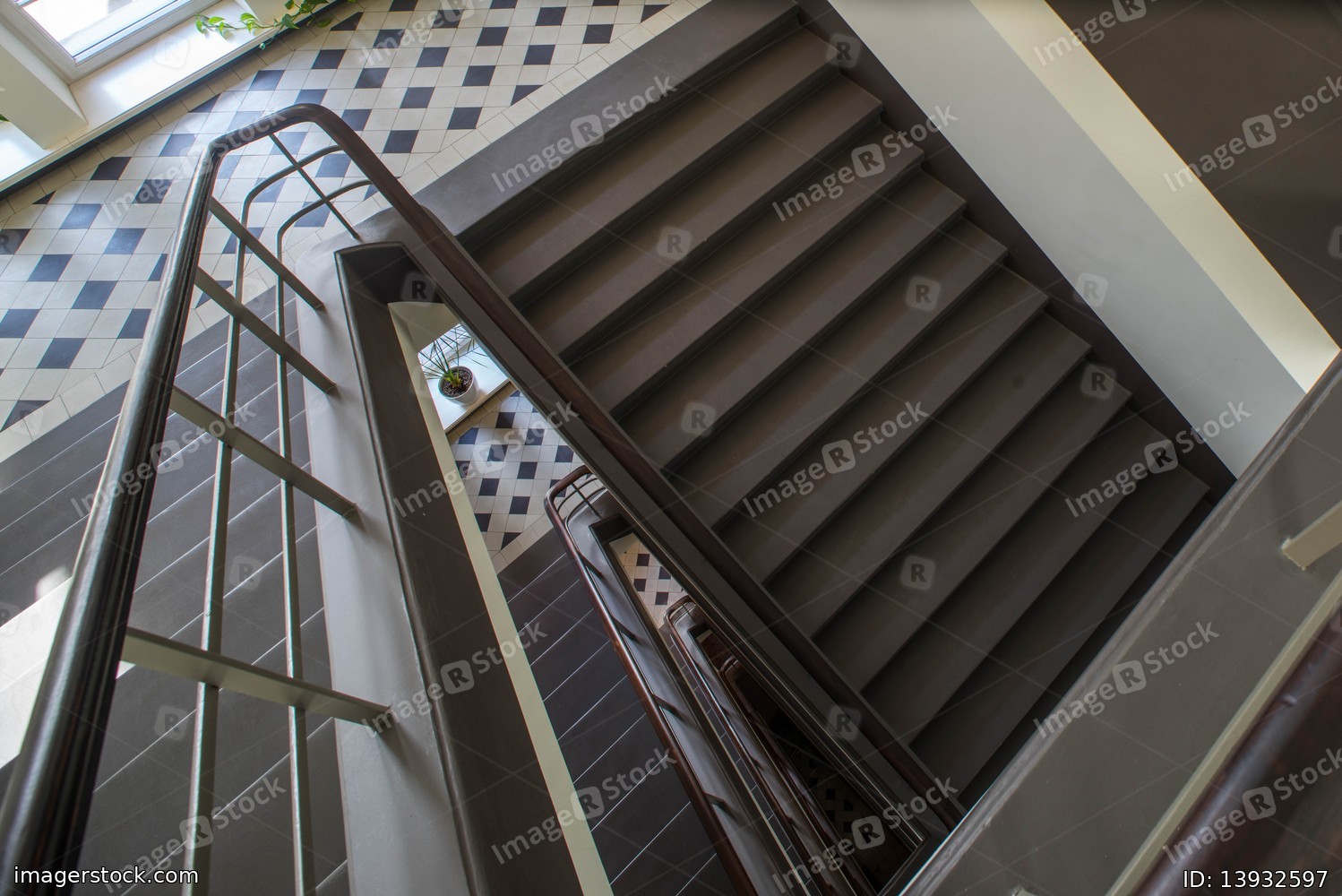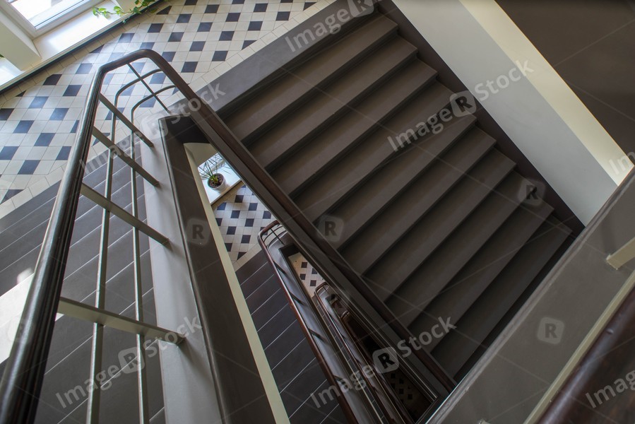 Grey staircase in modern building.