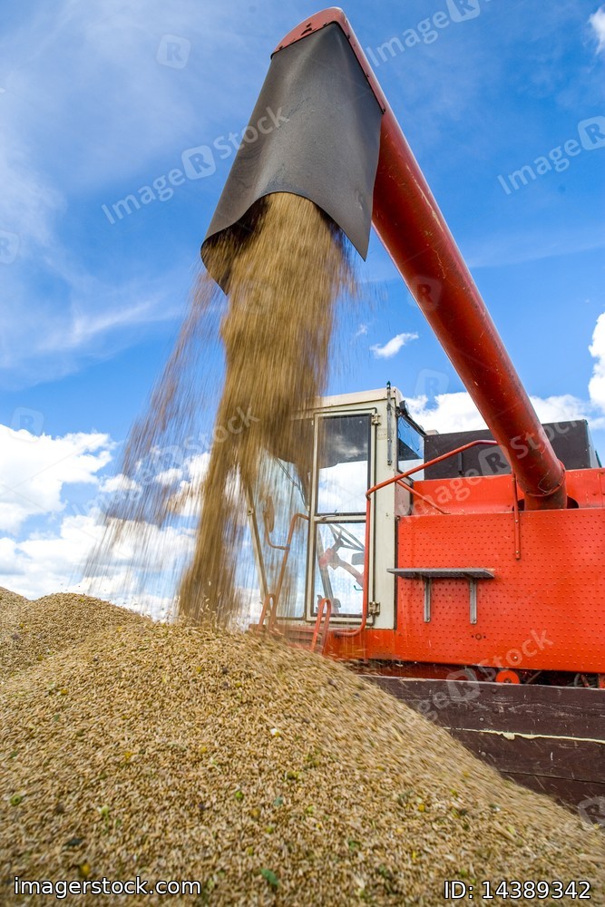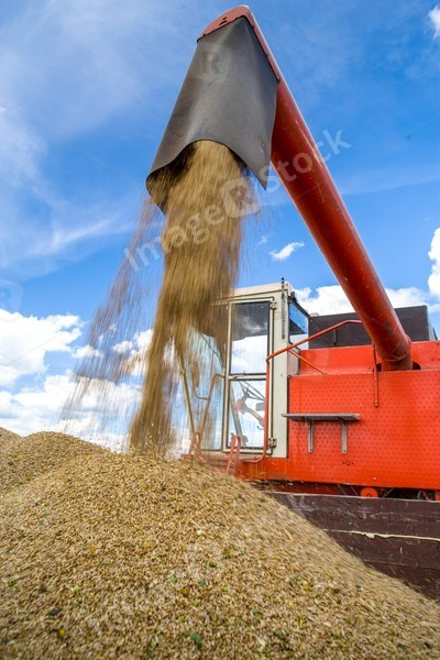 Harvesting of wheat. Tractor and special harvesting equipment.