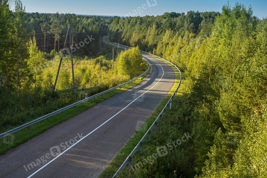 Highway in the forest. Tent on a night beach. Summer landscape. Car