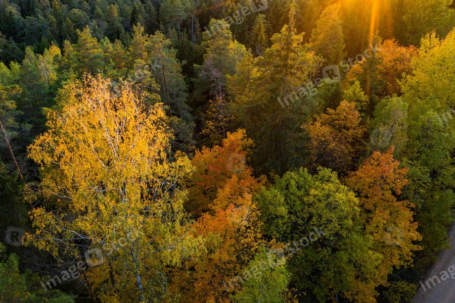 Latvian autumn nature. Forest. View from the top.