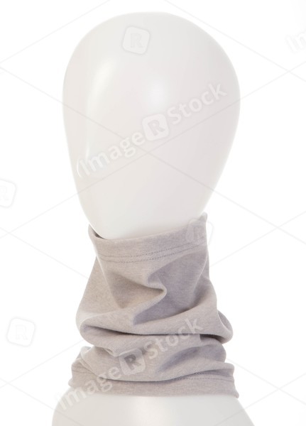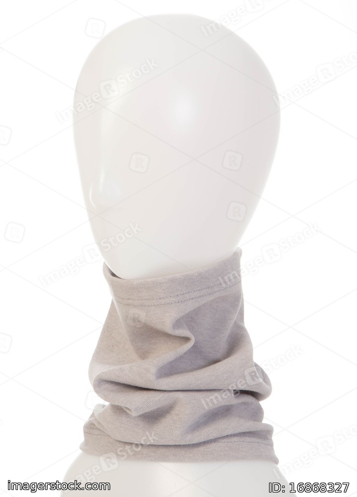 White background. Grey warm scarf. Mannequin head.