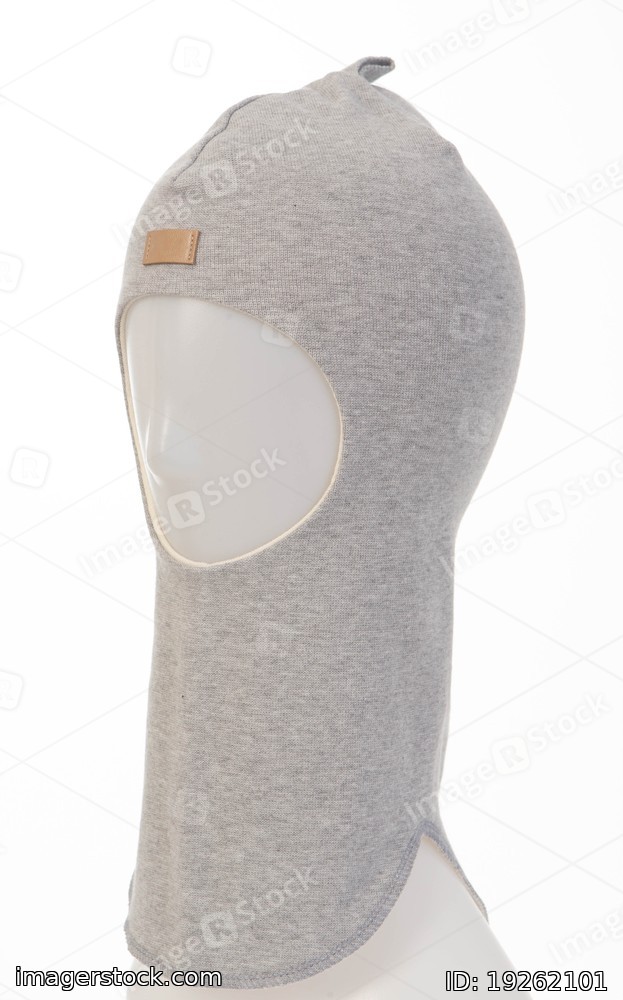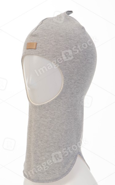 White background. Grey children hat. Winter fashion.