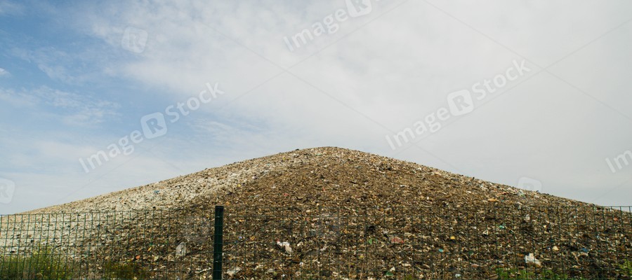 Huge landfill of big city. Large pile of different garbage. Environmental pollution. Waste sorting. Preparation for recycling.