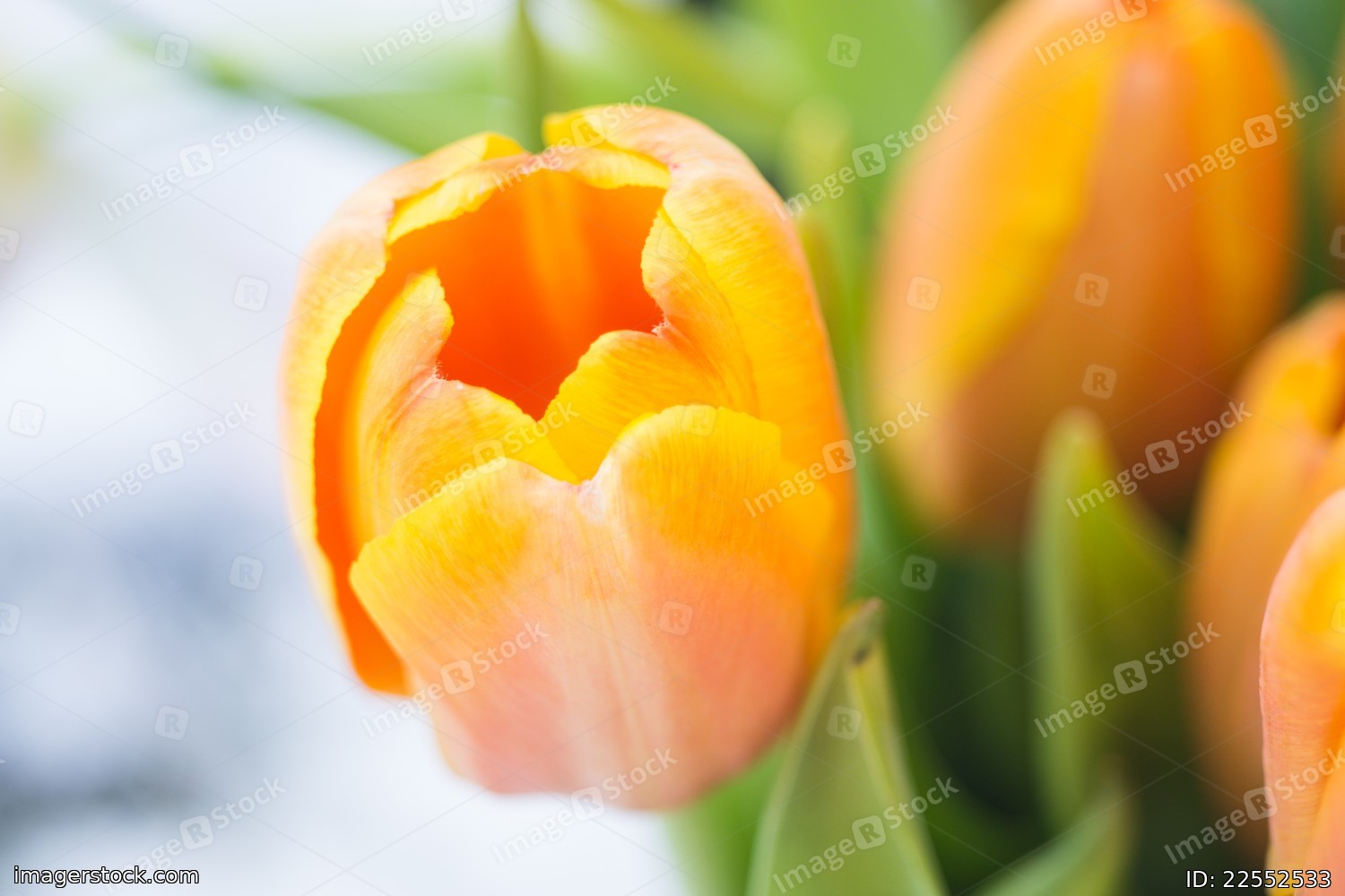 Tulips on the snow in early spring