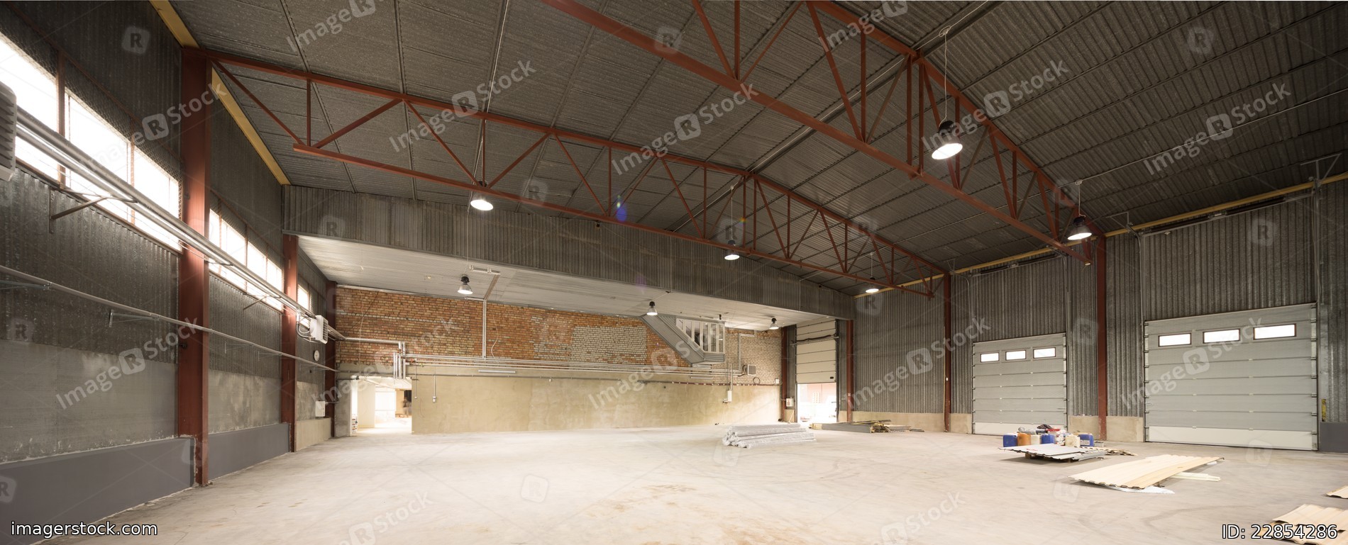 Hangar for storage. Industrial warehouse.