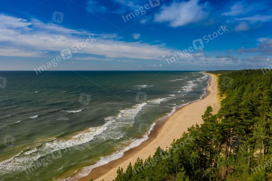 Beautiful landscape. View of coastline. Drone shot of Baltic sea.