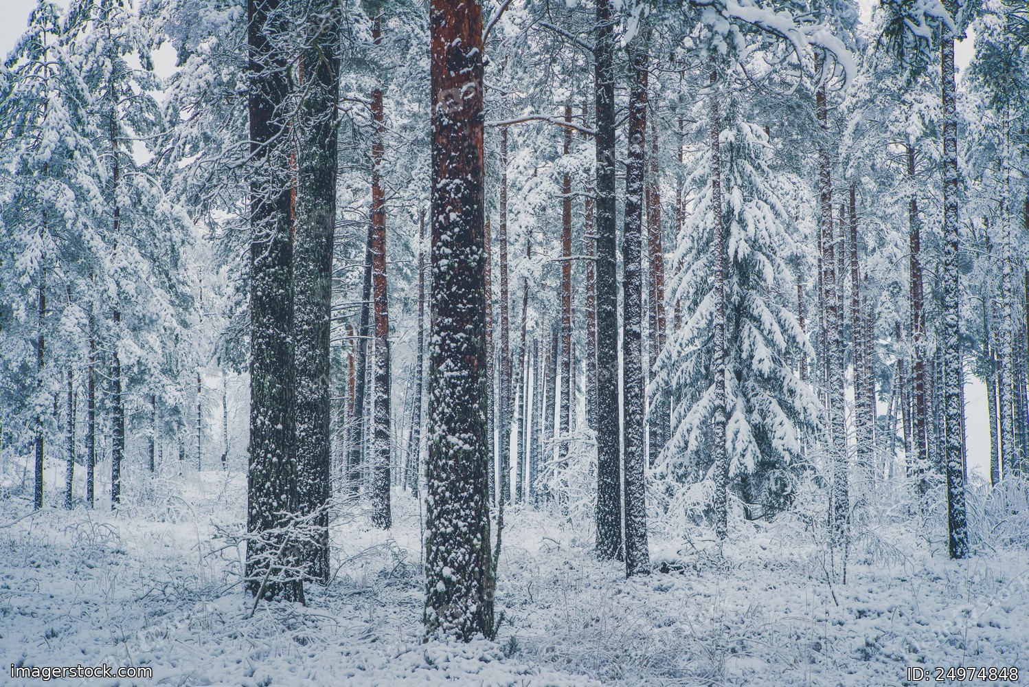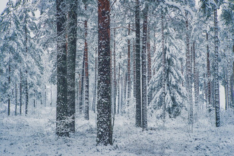 Beautiful winter landscape. Pine forest. Trees covered by snow