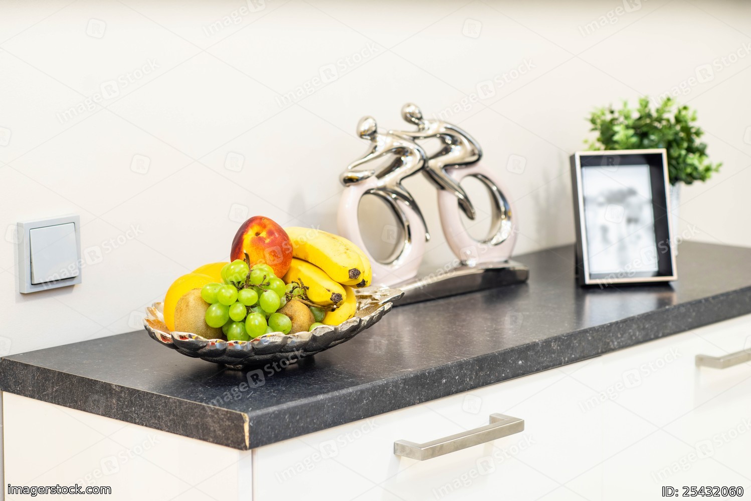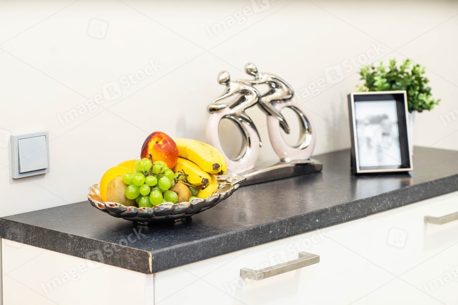 Close-up of fruits i the plate in modern kitchen.