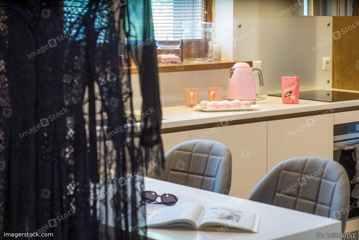 Kitchen studio interior. Modern kitchen in the house.